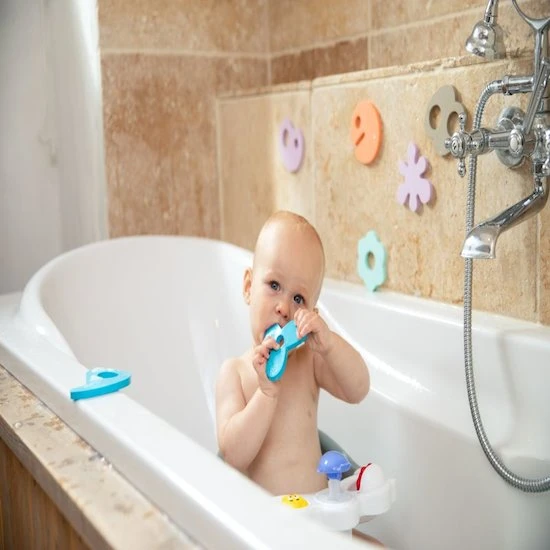 Amusants, les figurines en mousse peuvent être collées aux parois de la baignoire ou sur le carrelage
