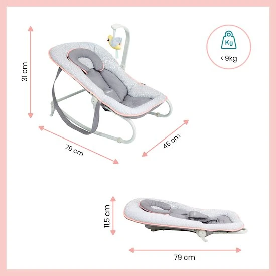 - Ultra confort, le transat s’incline sur plusieurs positions pour offrir un maintien optimal dès la naissance.