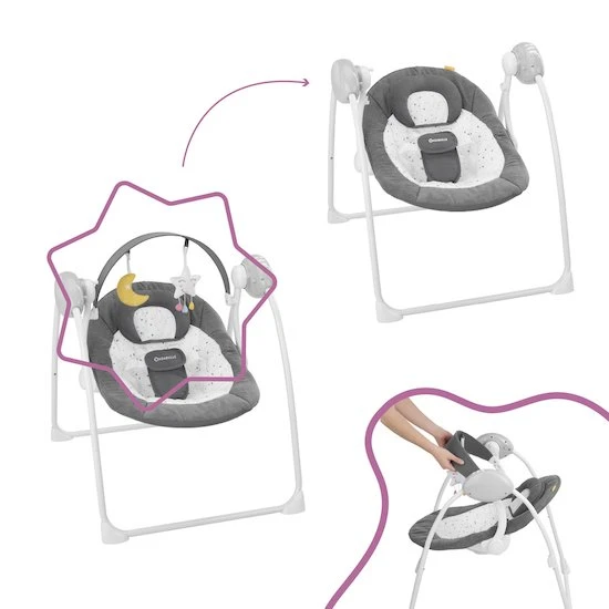 - Fini les piles ! La balancelle est livrée avec un adaptateur secteur.
