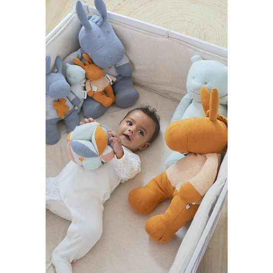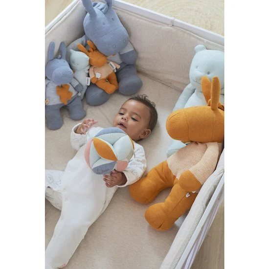 La balle d’activité multicolore de la collection Iconiques aussi appelée balle de préhension est une balle conçue pour apprendre aux enfants à agripper les objets. Celle-ci a été pensé afin que l’enfant insère ses petits doigts dans les entailles pour coordonnées la motricité de ses mains.