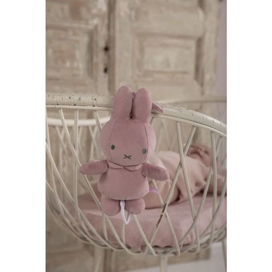 La nouvelle collection de Miffy en velours vous fera découvrir ses différentes tailles de peluches et accessoires à l’effigie de Miffy la célèbre Lapine.Cette adorable peluche Miffy cache une boite à musique ; tirez sur l’anneau et regardez bébé s’émerveiller en découvrant la douce mélodie… La berceuse pourra devenir un rituel qui aidera votre petite à s’apaiser au moment du sommeil.Habillée d’un joli velours milleraie dans un rose très tendance, cette boite à musique Miffy apportera également une tendre touche déco dans la chambre de votre petite fille. Si elle aime les peluches et les lapins, elle succombera au charme de la plus célèbre Lapine !Pratique, un lien permet d’accrocher la boite à musique au lit de bébé, dans la voiture…Le nettoyage de la peluche se fait en surface à la main.