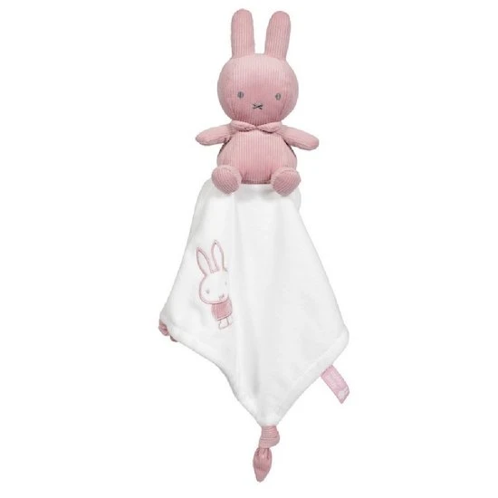 La collection velours rose de Miffy a crée un doudou avec la petite peluche Miffy et un dessin brodé sur la couverture douce du doudou pour les tout petits