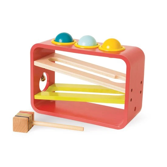 Avec le marteau, bĂ©bĂ© s’amusera Ă frapper sur les 3 balles pour qu’elles