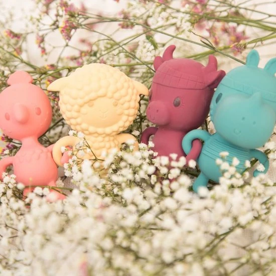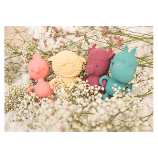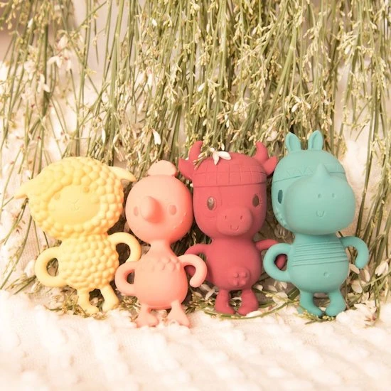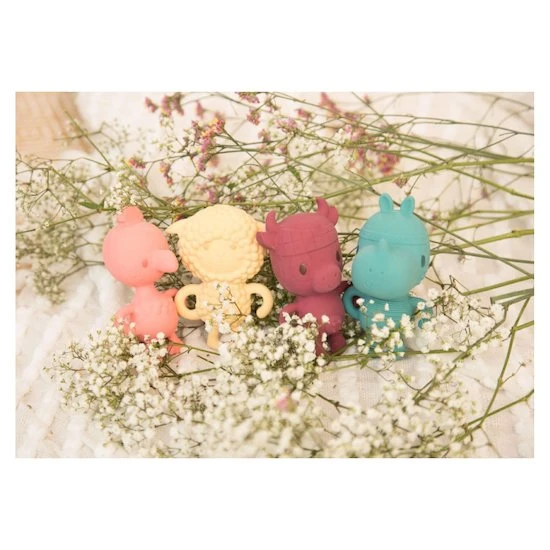 Écouter, sentir, appuyer, mordiller… Ce très beau hochet stimule les sens des plus petits et les soulage lorsqu’ils font leurs dents. Fabriqué en caoutchouc naturel et pigments végétaux.