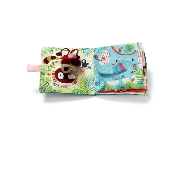 Bébé César se met au lit et embrasse tous ses amis. La marionnette à doigt s’en va câliner Albert, Georges et Alice… avant de dire ‘bonne nuit !’ à maman et d’aller se coucher dans son hamac ! Personnalise la dernière page avec ta photo pour faire dodo avec lui. Faites de doux rêves…