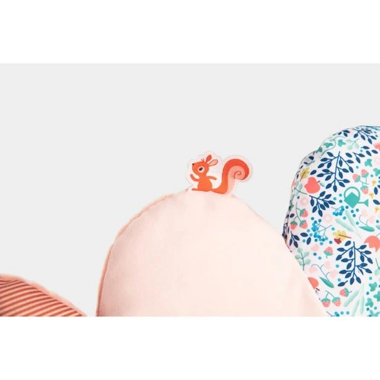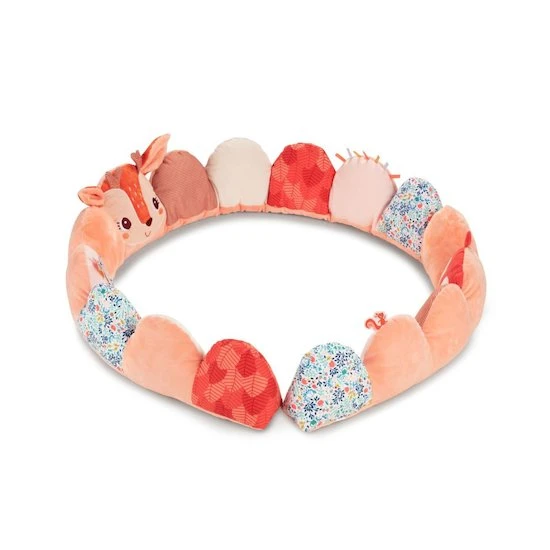 Des motifs colorés, des matières douces et une foule d’activités font de ce tour de parc une véritable aventure. Une multitude de découvertes captivantes et un coussin confortable pour se reposer.