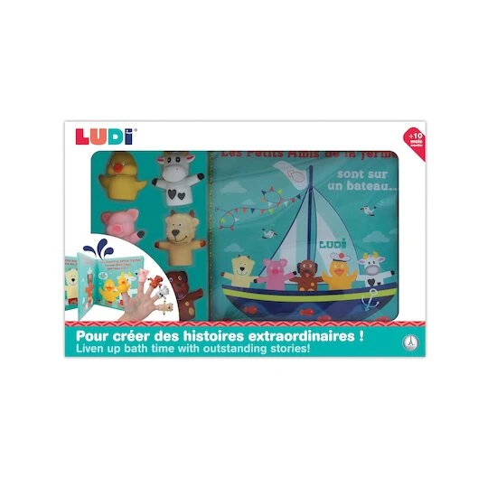 Ludi / 40017 / Livre d’éveil et ses 5 marionnettes / Âge + de 10 moisLivre de bain ou d’éveil accompagné de marionnettes de doigts que l’on retrouve dans l’histoire.