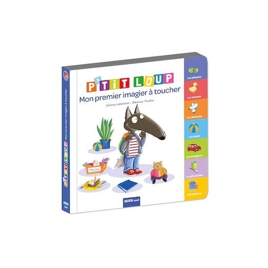 Un premier imagier à toucher sur le thème de la vie quotidienne. : Animaux, transports, vêtements, propreté, jouets, vacances et aliments : 7 catégories pour apprendre à reconnaître les objets de tous les jours. Orianne Lallemand est amoureuse des mots et s’amuse énormément à inventer des histoires drôles et originales. Ancienne styliste de mode, Éléonore Thuillier anime avec tendresse et originalité Loup et ses amis avec ses pinceaux.