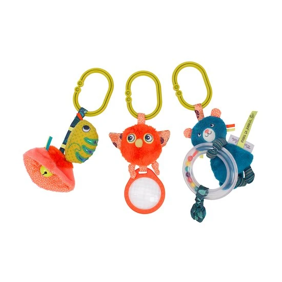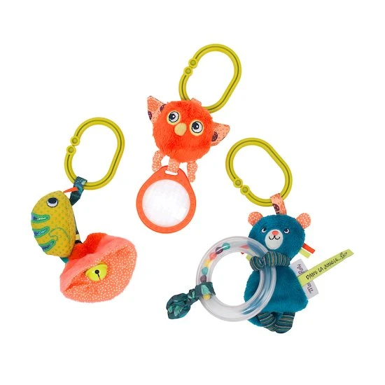 Elle est accompagnée d’un anneau à billes et émet de drôles de bruits qui amuseront et stimuleront votre bout’chou.