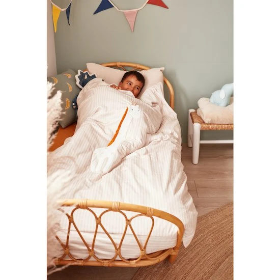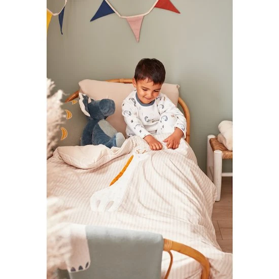 - Ses différents matières (crête en mousseline de coton BIO, velours côtelé sur son ventre) éveilleront le sens du toucher de bébé.