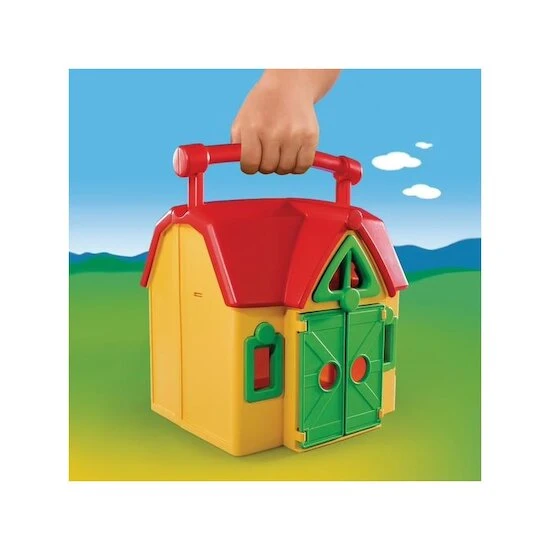 Avec Playmobil 1.2.3, la ferme transportable, votre enfant imagine et crĂ©e ses premières histoires et dĂ©couvre diffĂ©rents animaux de la ferme. Très pratique, il pourra ranger tous ses personnages Ă l’intĂ©rieur et les transporter n’importe oĂą. Et hop ! En route vers de nouvelles aventures.