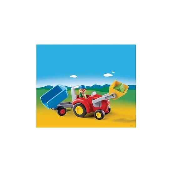Avec Playmobil 1.2.3, le fermier avec tracteur et remorque, votre enfant imagine et crée ses premières histoires. Le fermier achemine sa récolte dans son entrepôt grâce à son tracteur et sa remorque. Le bras et la pelle du tracteur sont mobiles. Vous pouvez compléter cet univers avec la ferme transportable avec animaux Playmobil. Et hop ! En route vers de nouvelles aventures.