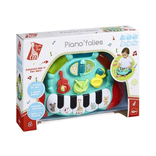 2 modes de jeu : Ludique, il suffit de toucher un instrument pour écouter les mélodies préenregistrées. Bébé crée ses propres mélodies avec ses 5 notes de musique.Avec ses effets lumineux et sonores, le Piano’folies devient le jouet préféré de bébé! Réglage du volume sonore Piles 3 x AA fournies