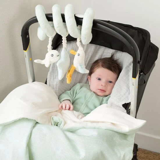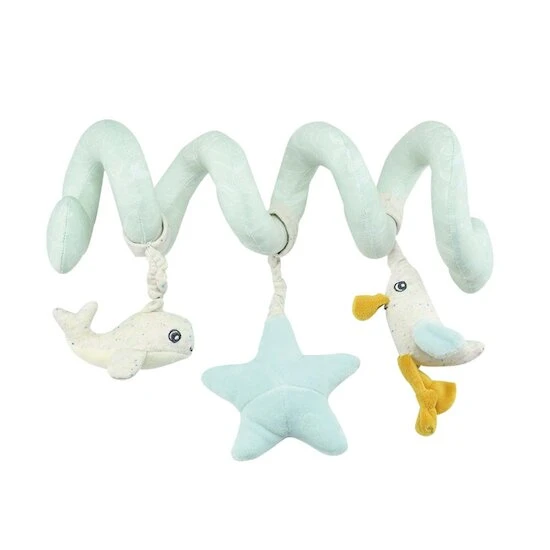 Jolie spirale toute douce dont les activités cachées dans les éléments suspendus éveillent les sens dès la naissance. Miroir, grelot et tissus bruissants amuseront votre bébé. Facile à fixer, elle s’installe sur le support de votre choix.