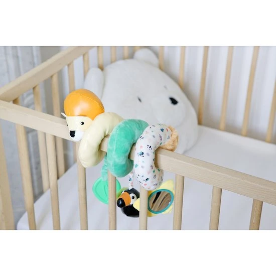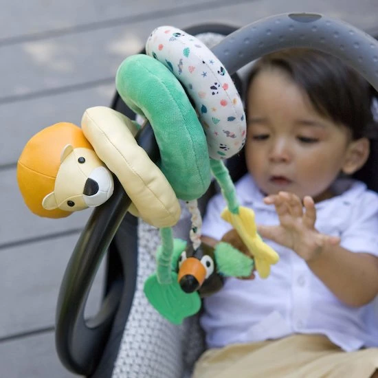 La spirale d’activité Little Big Friends amusera bébé lors de ses déplacements en poussette ou cosy. Elle peut également être fixée au lit ou au parc. Elle développe les sens de bébé avec ses textures, ses couleurs contrastées et ses jouets d’activité : pouet-pouet, animal maracas, miroir ou jouet de dentition. Existe en deux versions : Richard le Renard & les amis de la Ferme et Samson le Lion & les amis de la Jungle.