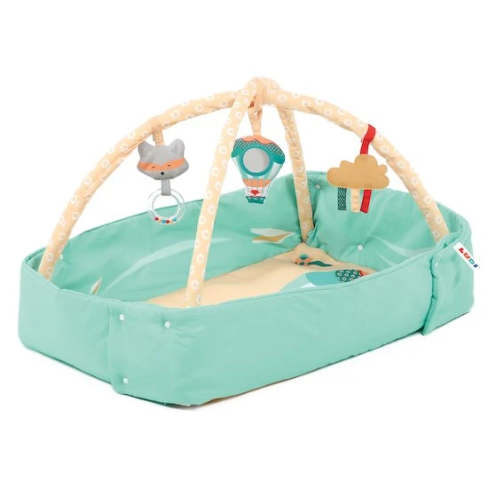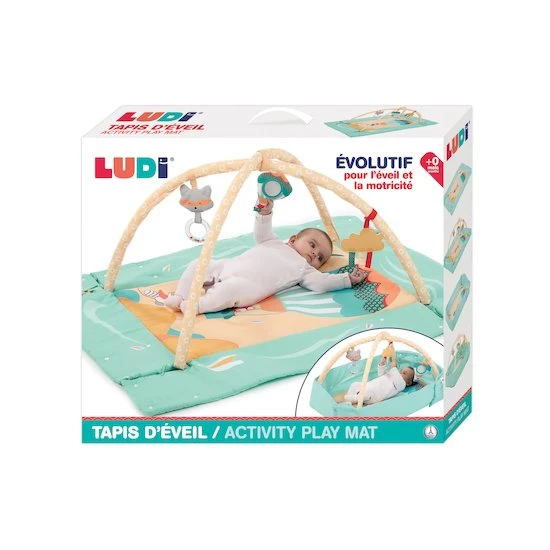 Ludi / 20008 / Tapis d’éveil « Montgolfière » / 0 moisUn tapis de jeu épais et moelleux où bébé peut gigoter et s’amuser confortablement en toute sérénité. Sur les arches amovibles, des activités sensorielles pour l’éveil des petits. Ce grand espace confortable évolue et se transforme en petit cocon sécurisant en rabattant les côtés du tapis.