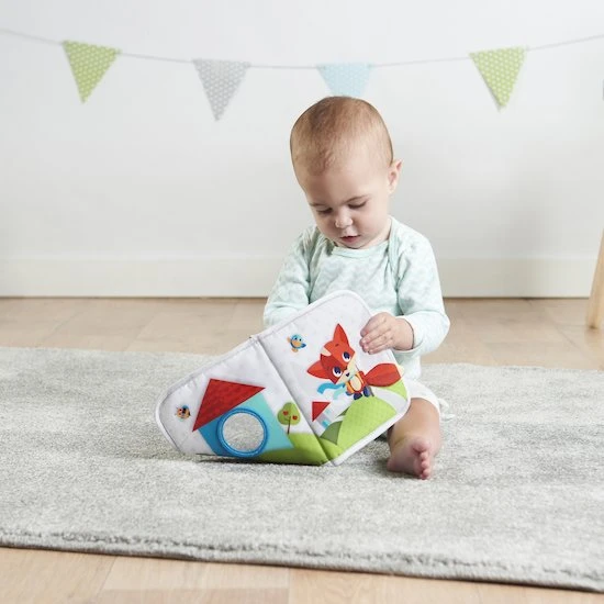 > Muliples activités: Eléments cahe-cache, Anneau à dentition, Hochet, Textures bruissantes, Miroir