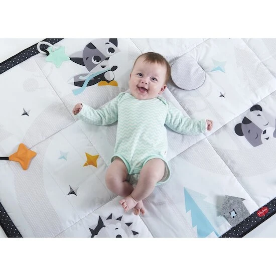 Aire de jeu et d’éveil XL qui stimule la curiosité des petits et travaille au développement de la grosse motricité.> Le miroir réglable autonome divertira Bébé et l’incitera à passer plus de temps à plat ventre.> Se plie et se transporte facilement. Nombreuses fonctions pour l’intérieur ou l’extérieur. Encourage le développement de Bébé par des Moments d’emerveillement