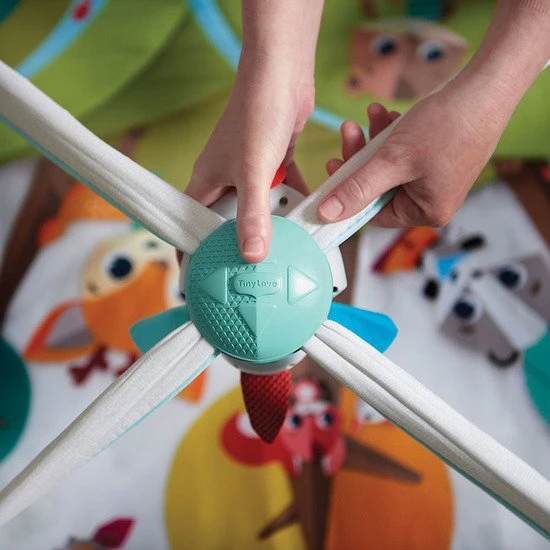 > 7 Activités et jeux fournis : 3 figurines en tissus reglables sur les arches : Castor/ Raton laveur/ Faon