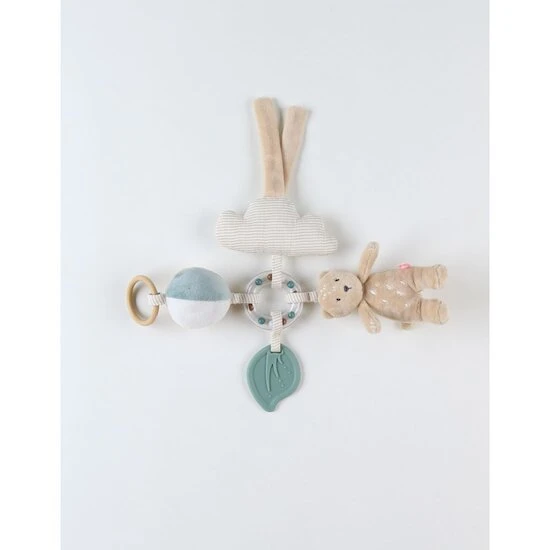 - Vous y retrouverez : un anneau avec billes multicolores, un pouet Kendi, un nuage en papier froissé, un anneau de dentition en forme de feuille pour soulager les poussées dentaires.