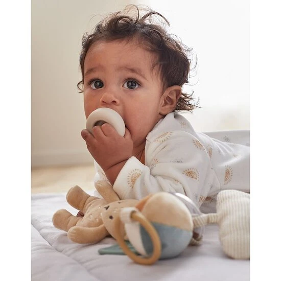 - Ce trousseau d’éveil réunit différentes activités qui stimuleront les sens de bébé.